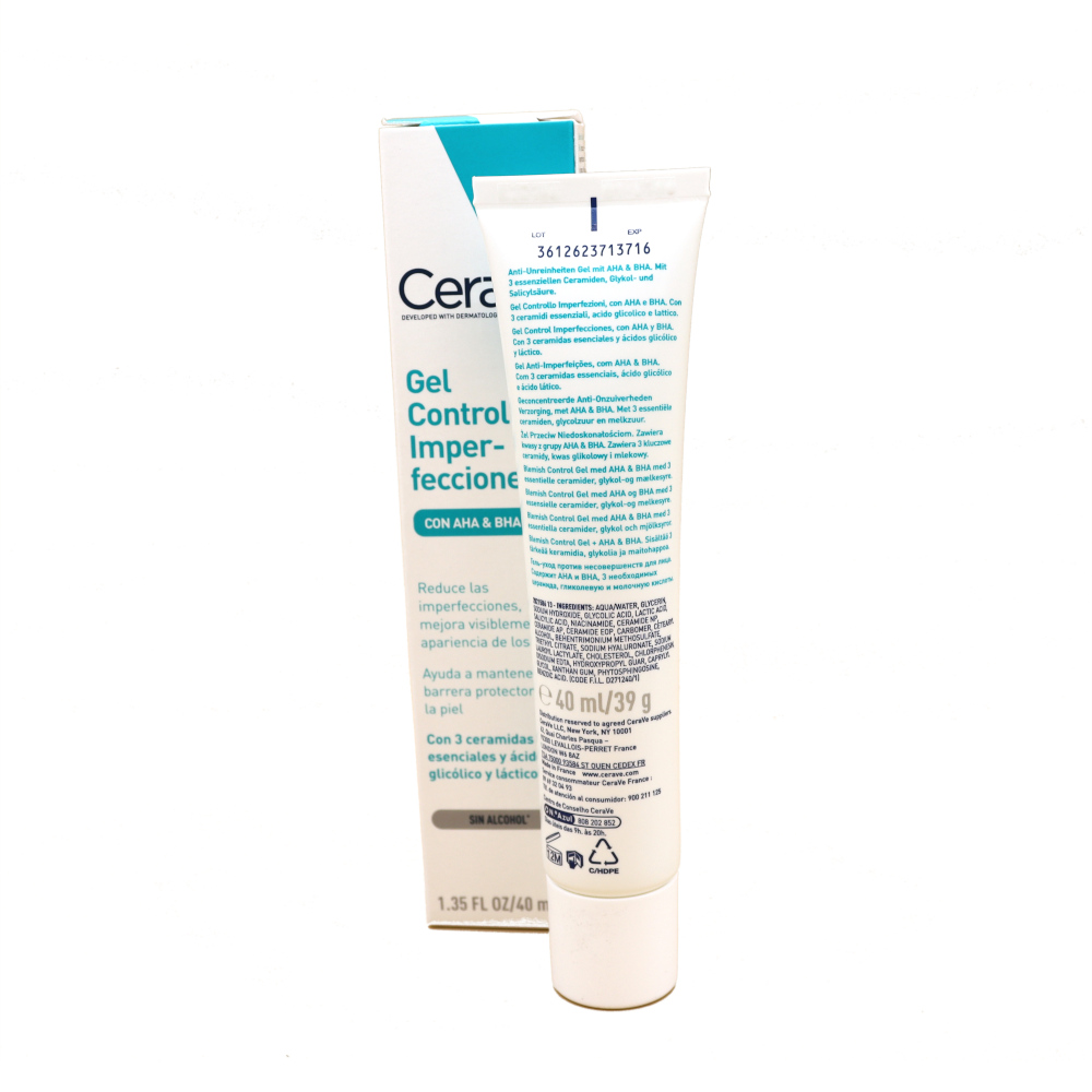 Desarrollado con dermatólogos, el Gel Control Imperfecciones CeraVe proporciona un tratamiento ligero e hidratante para todo el rostro que elimina las manchas y ayuda a prevenir nuevos brotes, a la vez que minimiza el aspecto de los poros sin resecar la piel. Formulado con 3 ceramidas esenciales para ayudar a mantener la barrera natural de la piel y con niacinamida para ayudar a calmar la piel. Recomendado para su uso una vez al día por la noche, esta fórmula con una poderosa mezcla de AHA y BHA (reducen el acné, previenen los brotes y alisan la piel), no contiene aceite ni alcohol secante, dejando la piel con un aspecto más radiante, suave y notablemente más claro después de 3 días.No comedogénico. Sin perfume. Sin alcohol (etanol).